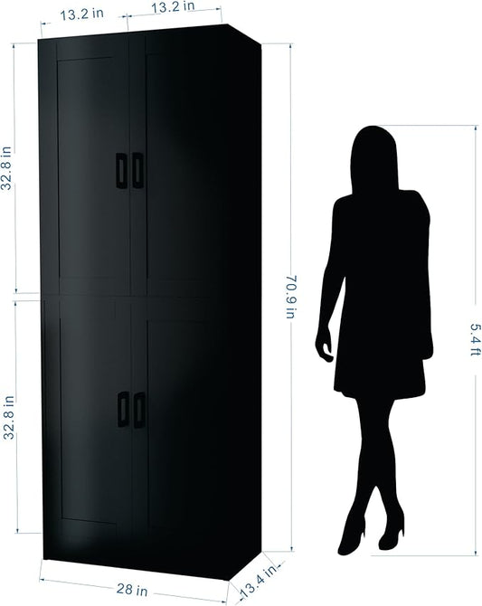 Black Kitchen Pantry, 71" Tall Storage Cabinet with Doors and Drawer for Kitchen, Hallway, Office