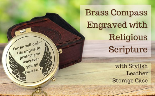 Brass Compass Engraved with Religious Scripture Verse - Ideal Gift for Son, Grandson, Daughter - Perfect for Baptism, Communion, Church and Graduation Day Present