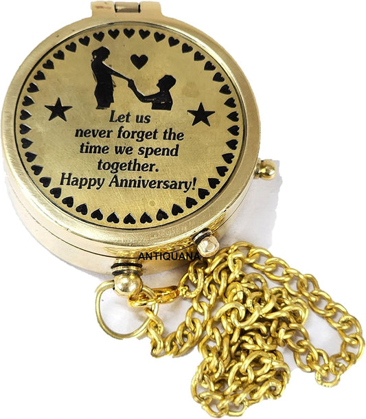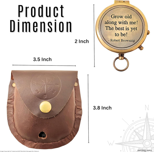 Brass Sundial Compass with Leather Case - Compass Gift for Men - Anniversary Sundial Compass Gift for Him or Her–Antique Brass & Copper-Sundial Clock in Box Gift