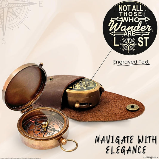 Brass Compass with Wooden Box - Graduation Gifts, Pirate Accessories & Baptism Gift For Boys, Steampunk Travel Decor Compasses For Missionary, Inspirational and Sentimental Compass