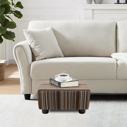 CAROLMADE Small Foot Stool Ottoman Footstool with Legs Under Desk Footrest for Living Room Bedroom and Office,Linen-Stripe Brown