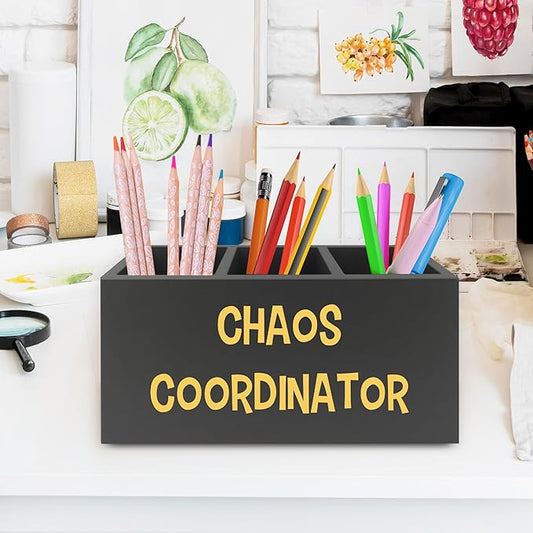 Chaos Coordinator Pen Pencil Holder Organizer for Desk, Thank You Gifts for Women Men Coworkers Boss Leader Manager, Appreciation Gifts Wooden Box Sign for Home Office Desk Tabletop Decorations