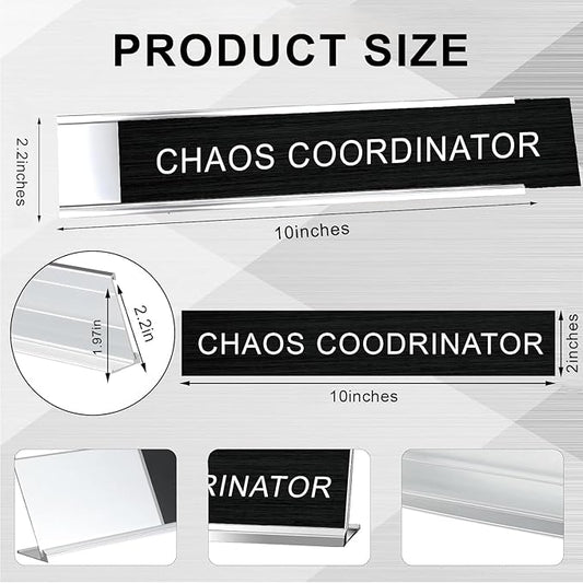 Chaos Coordinator Novelty Nameplate Office Decor, Funny Desk Signs Black Desk Plaque for Women Men Coworker Gift Office Home Supply Accessories 10 x 2"
