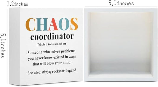 Chaos Coordinator Gifts Office Decor Wooden Box Sign, Administrative Professional Day Gifts Thank You Gifts for Boss Coworker Teacher Nurse Decorative Office Desk Accessories Table Shelf Plaque Sign