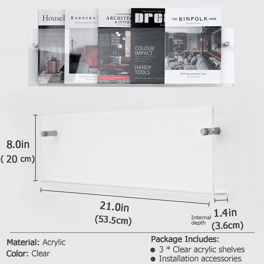 Clear Acrylic Brochure Holder Wall Mount 3 Tier, Hanging Bookshelf Magazine Rack Literature Storage Rack for Waiting Room, Living Room, Office, Home Display