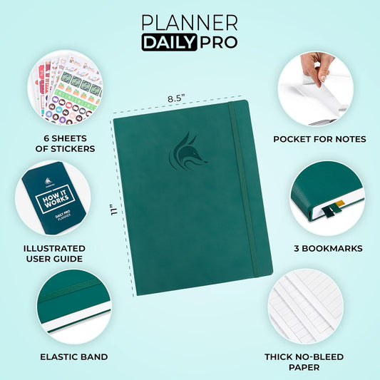Clever Fox Planner Daily PRO - 8.5 x 11" A4 Size Daily Life Planner and Gratitude Journal to Increase Productivity, Time Management and Hit Your Goals - Undated - Lasts 3 Months (Turquoise)