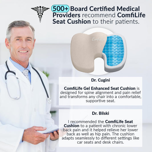 ComfiLife Premium Gel & Memory Foam Seat Cushion – Doctor Recommended Office Chair Cushion, Car Seat Cushion – Chair Cushions for Back & Sciatica Pain Relief – Seat Cushions for Office & Desk (Beige)