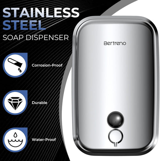 Commercial Soap Dispenser Wall Mount Stainless Steel Soap Dispensers Liquid Manual Anti-Leak Pump Hand Soap Dispenser for Bathroom Kitchen Silver (35 fl.oz./1000ml)