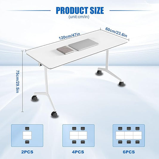 Conference Table, Folding Conference Desk Modern White, Seminar Table with Wheels, 2-10 People for Office, Meeting Break Room (6, 1915TXH, 47IN)