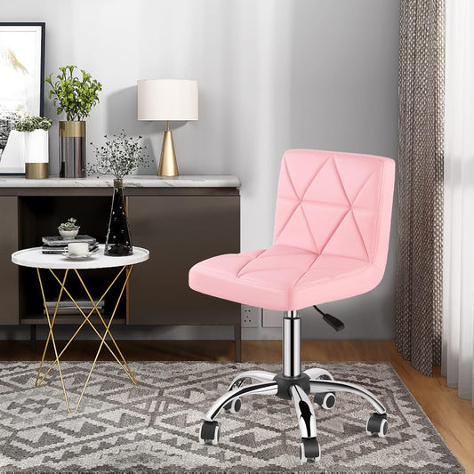 COSVALVE Armless Desk Chair, Mid Back Swivel Office Chair, Adjustable Task Chair with Rolling Wheels and Diamond Pattern, for Home Computer Barber, Pink