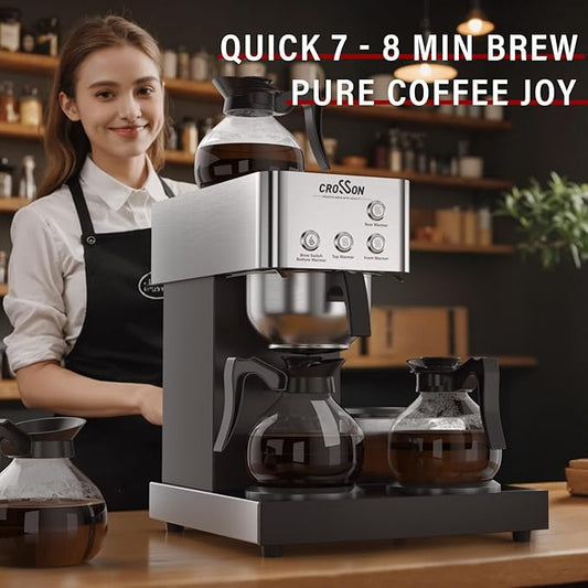 crosson 12 Cup Commercial Coffee Brewer with 4 Warmers & 4 Glass Decanter,Pour Over Drip Coffee Maker with Stainless Steel Housing and 304 SS Funnel