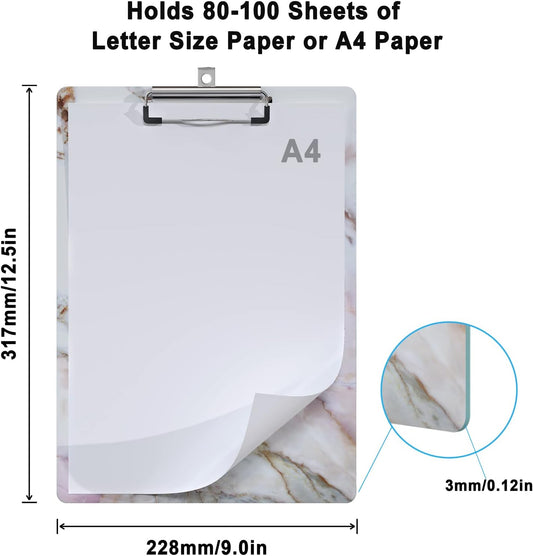 Cute Clipboard Wood Design Decorative A4 Letter Size Clipboards for Office, Standard Size 9" x 12.5" with Low Profile Metal Clip - Colorful Marble