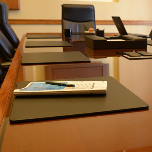 Dacasso Black Leatherette 20" x 16" Luxury Conference Table Pad - Desk Blotter for Writing - Boardroom Organization & Executive Desk Decor