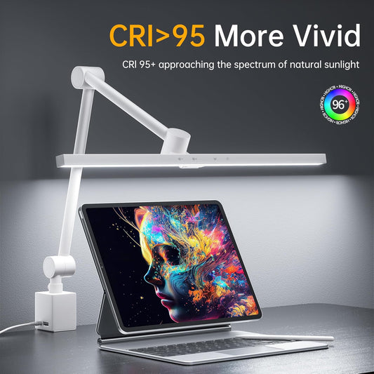 deeloop 2-in-1 LED Desk Lamp or Clamp with USB Charging for Home Office, CRI 95+ for Sunlight-Like Spectrum, 45° Asymmetric Glare‑Free Light, Memory Dimming Desk Light, Full‑Angle 3‑Axis Office Lamp