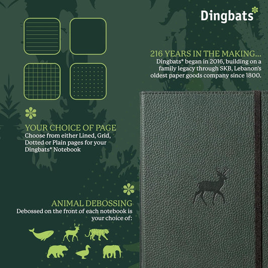 Dingbats A5 Wildlife Ruled Notebook Journal - Premium Vegan Leather Softcover Executive Journal for Women & Men - Work, Note Taking, Writing & Travel