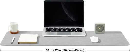 Distressed Leather Desk Mat - Non-Slip PU Desk Pad for Office and Home - Desk Organization and Accessories - Ideal for Large Mouse Pad and Desk Mats on Top of Desks(Ash Gray,36"x 17")