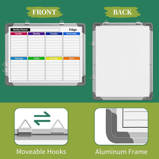Dry Erase Calendar Whiteboard for Wall, Polegas 16" X 12" Magnetic White Board Board, Small Wall Monthly Double Sided Boards Student, Home, Office (White)