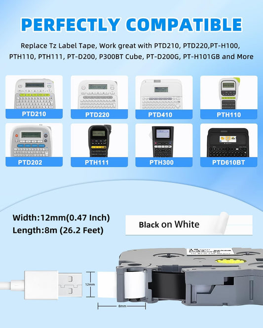 15-Pack 12mm 0.47 Inch Laminated White TZe Tz Tape Replace for Brother Label Maker Tape TZe-231 Compatible with P Touch Label Maker PT-D210 PT-D220 PT-D200 PT-H100 PT-D400 PT-D600