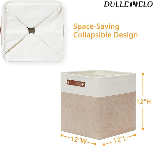 DULLEMELO Baskets For Organizing, Cube Storage Bins 12x12 Storage for Toys, Books and Clothes, Foldable Storage Bin for Office, Home, Shelves, Closets Organizing(4 Pack - 12" Beige)