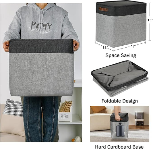 DULLEMELO Fabric Storage Bins - Decorative Large Baskets for Home Shelves & Bedroom, Canvas Toy Organizers (Black & Gray)