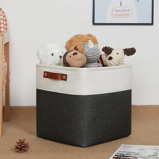 DULLEMELO Storage Bins for Organizing,Closet Storage Baskets for Gift Empty,Large Linen Canvas Storage Bins with Handles for Home Office Toys Shelves(Black&Grey, 13 inch Cube)