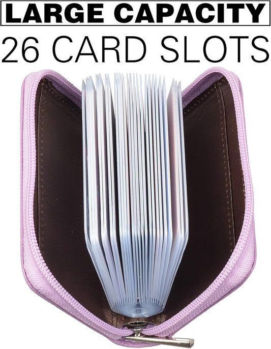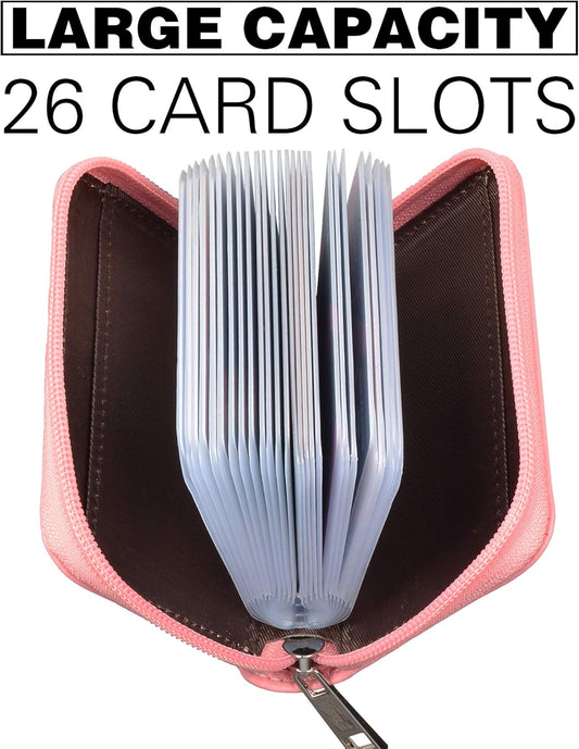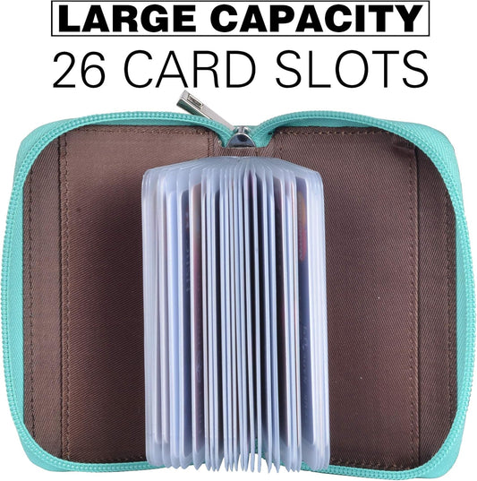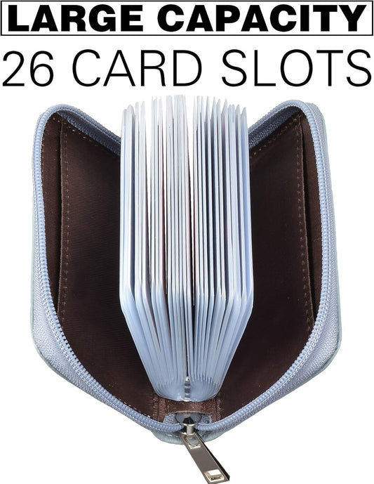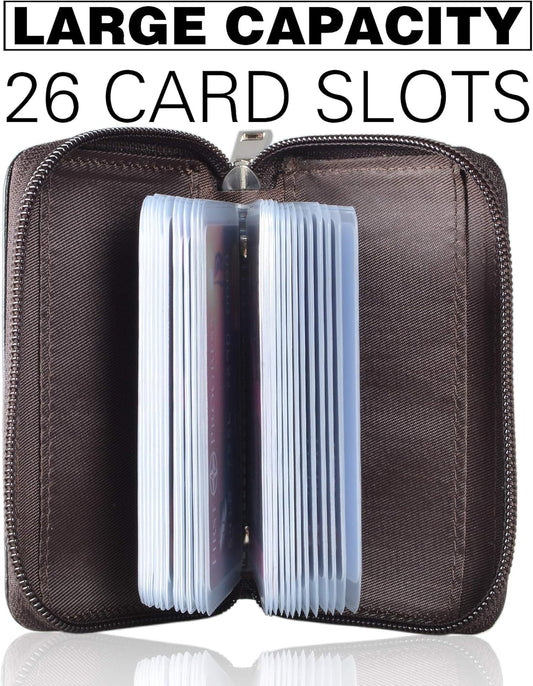 Easyoulife Genuine Leather Credit Card Holder Zipper Wallet With 26 Card Slots