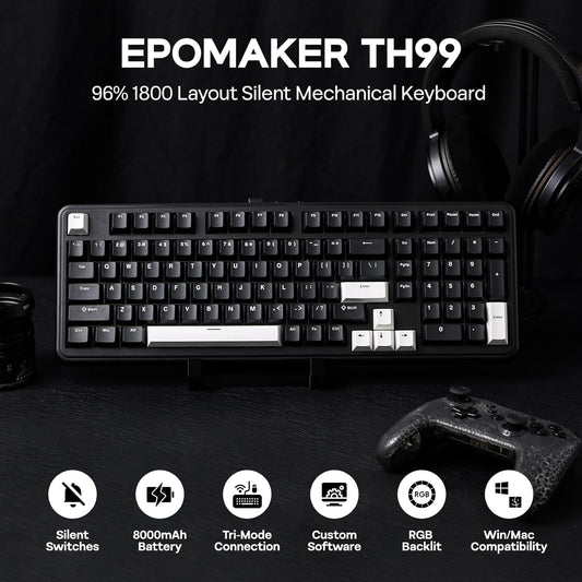 EPOMAKER TH99 Wireless Mechanical Keyboard with Lubed Silent Switch, Quiet Gaming Keyboard, 8000mAh,Creamy Gasket,RGB Backlit,Numpad,PBT Keycap,Hot Swappable,for Gamers/Office (Black)