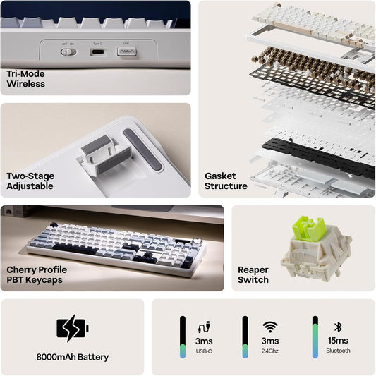EPOMAKER X Aula F99 PRO Wireless Gaming Keyboard with 8000mAh Battery, Hot Swappable Creamy Keyboard, 2.4GHz/Type-C/BT5.0, NKRO, RGB Backlit for Win/Mac/Gaming (Black&White&Green)