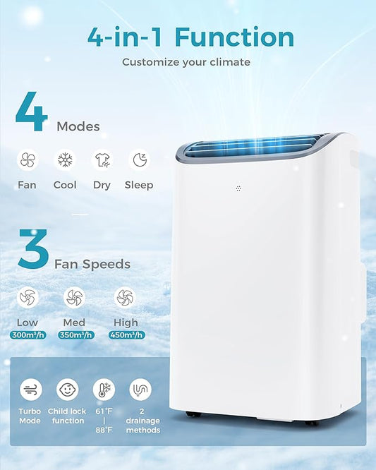 EUHOMY Portable Air Conditioners, 14000 BTU Portable AC Unit up to 700 Sq.Ft, 4-in-1 Portable Air Conditioner with Cool,mDehumidifier, Fan, Sleep Mode, 24H Timer, Remote, for Apartment, RVs, Bedroom
