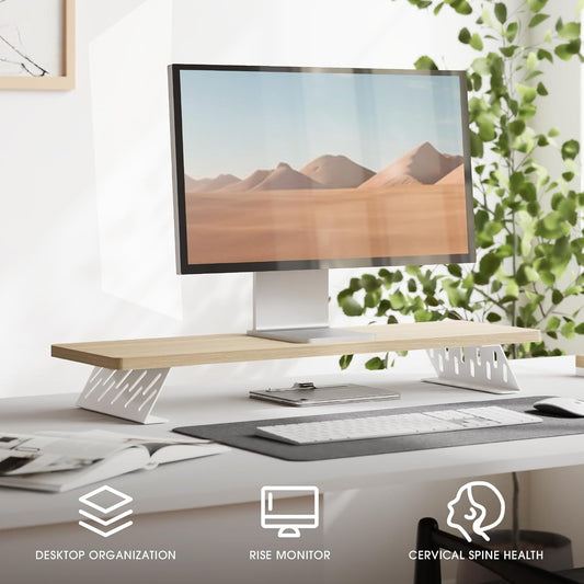 Fenge Monitor Stand, Monitor Stands Riser for Desk, 23.6 Inch Wood Desk Shelf with Storage Organizer and Cable Management for Office Desk Accessories