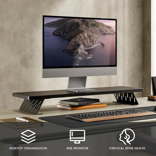 Fenge Monitor Stand Riser, Desk Top Shelf for 2 Monitors, Computer Stands for Desk, Wood & Steel Desktop Riser for Laptop, PC, Printer