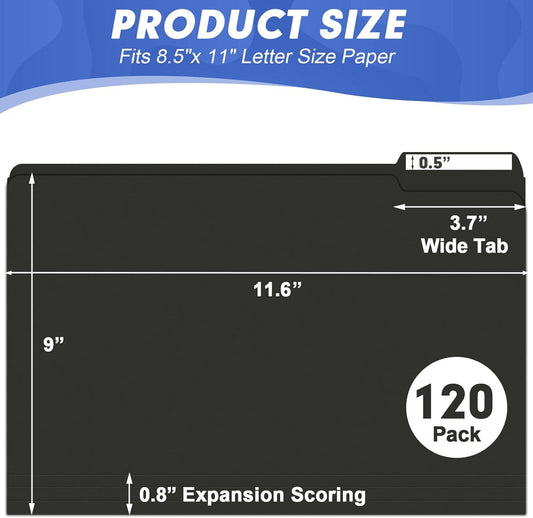 File Folder, HERKKA 120 Pack 1/3 Cut Tab File Folders, File Folders Great for Organizing and Filing, Letter Size, Black