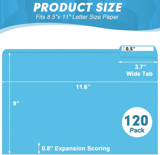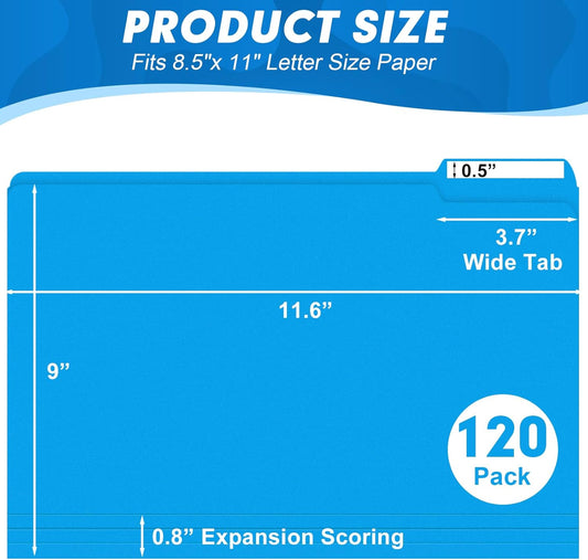 File Folder, HERKKA 120 Pack 1/3 Cut Tab File Folders, File Folders Great for Organizing and Filing, Letter Size, Blue