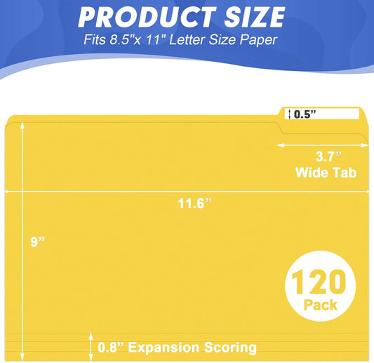 File Folder, HERKKA 120 Pack 1/3 Cut Tab File Folders, File Folders Great for Organizing and Filing, Letter Size, Yellow