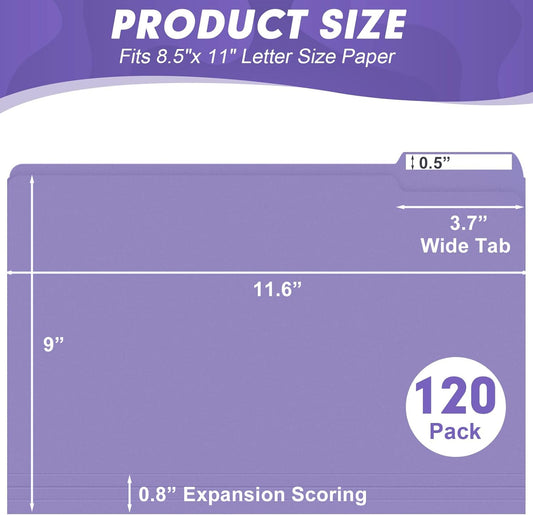 File Folder, HERKKA 120 Pack 1/3 Cut Tab File Folders, File Folders Great for Organizing and Filing, Letter Size, Purple