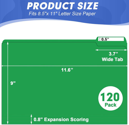 File Folder, HERKKA 120 Pack 1/3 Cut Tab File Folders, File Folders Great for Organizing and Filing, Letter Size, Green