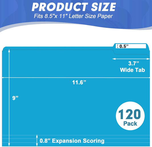 File Folder, PANDRI 120 Pack File Folder, 1/3 Cut Tab, Letter Size, Filing Folder for Office School Business, Aqua