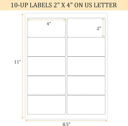 FungLam 2x4 Shipping Address Labels for Laser & Inkjet Printers, 300 Printable White Sticker Labels, 10 per Page Mailing Labels, Permanent Adhesive (30 Sheets, 300 Labels)