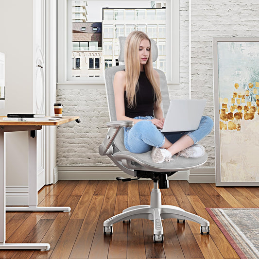 GABRYLLY Ergonomic Office Chair, High Back Home Desk Chair with Headrest, Flip-Up Arms, 90-120° Tilt Lock and Wide Cushion, 400LBS Mesh Chairs for Man Woman, White Task Chair(Grey,GY01WG)