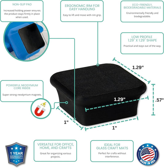 Glassboard Studio MiniBar Magnet - Strong Neodymium Rare Earth Magnets for Fridge, Whiteboard, Locker & Magnetic Glassboards - Ideal for Crafting & Office Use - Strong Fridge Magnets (Jet Black, 12)