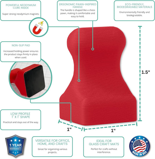 Glassboard Studio MiniPawn Magnet - Strong Neodymium Rare Earth Magnets for Fridge, Whiteboard, Locker & Magnetic Glassboards - Ideal for Crafting & Office Use - Strong Fridge Magnets (Cherry Red, 12)