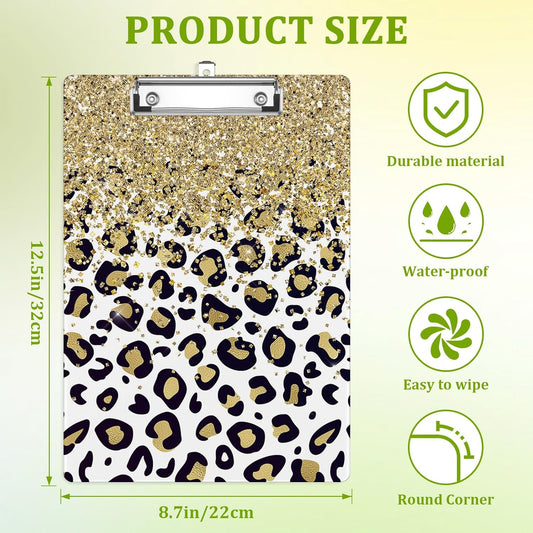 Glitter Leopard Clipboard,Decorative Acrylic Clipboard with Low Profile Metal Clip for Office,School,Teachers,Students Standard Letter Size 9x12.5