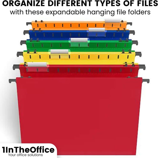 1InTheOffice Hanging File Folder, Hanging File Pocket, Expandable Hanging File Folder, Letter Size, Assorted Color, 5 Pack