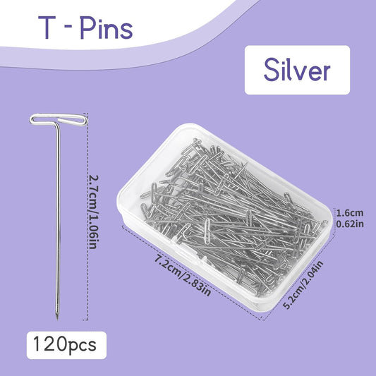 1Inch 120 Pcs T Pins, Sewing Pins for Wigs, Blocking Knitting, Modelling, Wig Making and Crafts, Stainless Steel Head Pins for Sewing and Craft, Jewelry Making