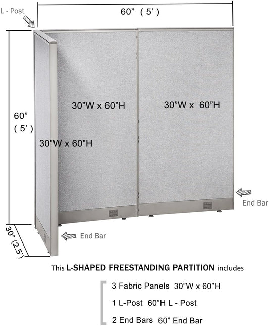 GOF Freestanding L Shaped Office Partition, Large Fabric Room Divider Panel, 30" D x 60" W x 60" H