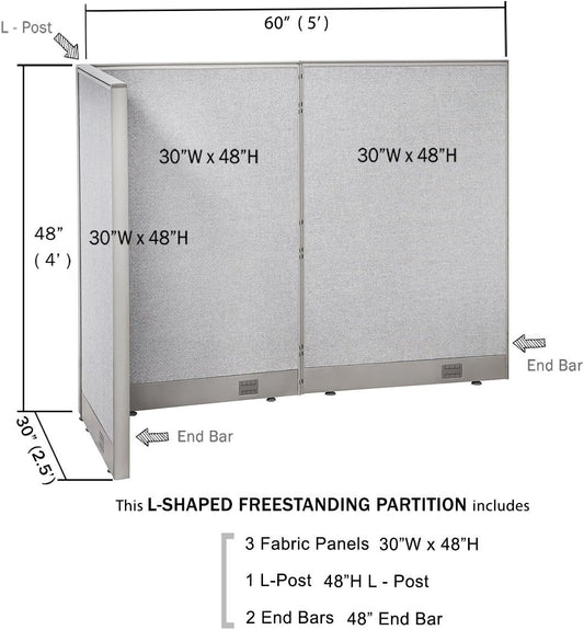 GOF Freestanding L Shaped Office Partition, Large Fabric Room Divider Panel, 30" D x 60" W x 48" H