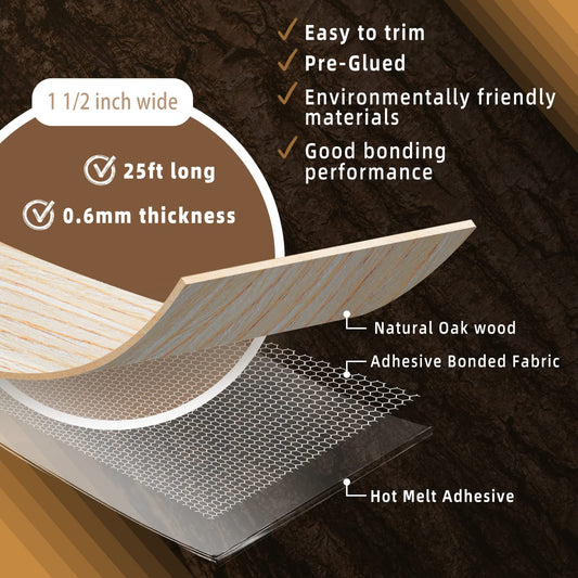 GSCIT Club Oak Edge Banding, 1 1/2 inch x 25ft roll of Veneer Edge Banding Preglued Flexible, Real Wood Tape Banding