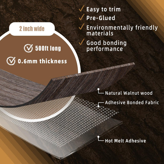GSCIT Club Walnut Edge Banding, 2 inch x 500ft roll of Veneer Edge Banding Pre-glued Flexible, Wood Tape Banding for Cabinet Repair Furniture
