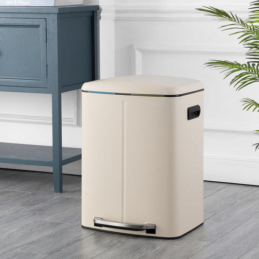 happimess HPM1014C Beni Kitchen 16-Gallon Double-Bucket Step-Open Trash Can with Soft-Close Lid, Modern, Minimalistic, Fingerprint Proof for Home, Kitchen, Laundry Room, Office, Bathroom, White