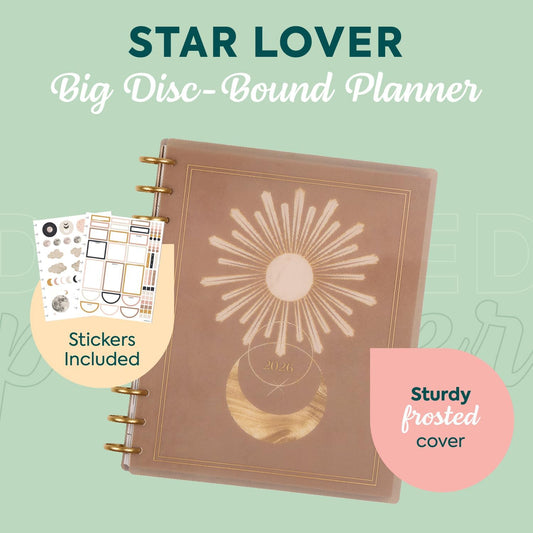 Happy Planner Disc-Bound Planner Jan.–Dec. 2026, Includes 3 Extra Months and 2 Sticker Sheets, Big Size, 8.5" x 11", Dashboard Layout, Star Lover